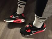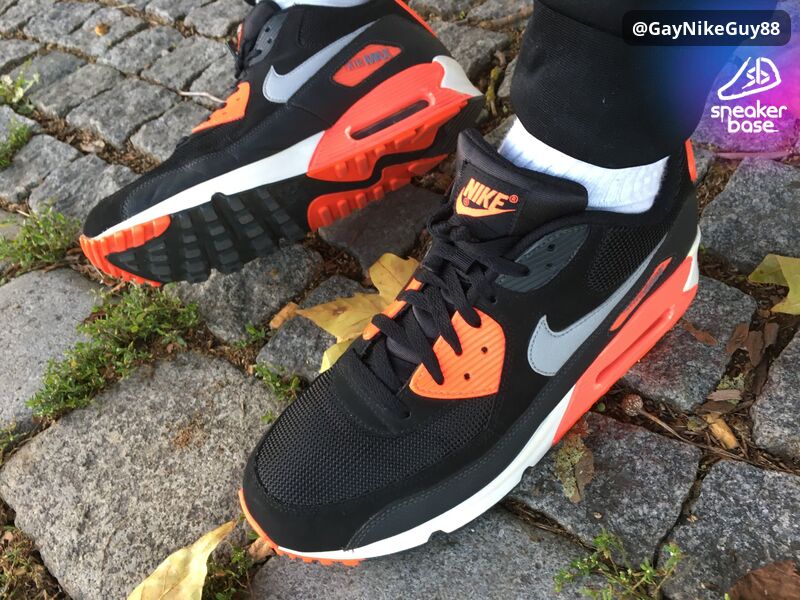 NIKE Air Max 90 Black/Wolf Grey - Atomic Red, Gr. 46 (Black Infrared) aus 2013.