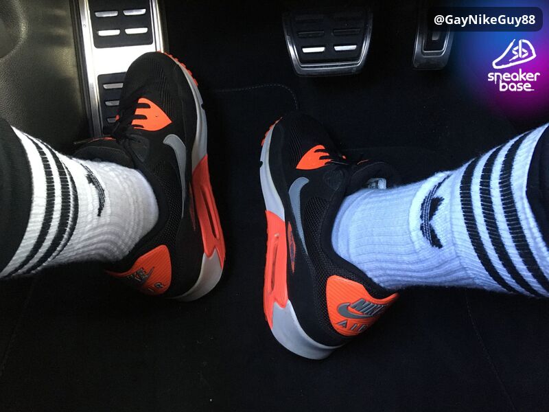 NIKE Air Max 90 Black/Wolf Grey - Atomic Red, Gr. 46 (Black Infrared).