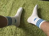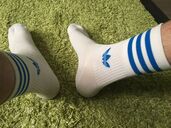 ... sehr lekka AdiSox in white/satelliteBlue (ich glaub so hieß das AdidasBlau zumindest an SuperStars);Wenn die noch geil smelln dann ... * mjam mjam *