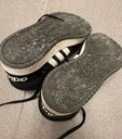 Ein Freund von mir hat die gleichen Schuhe, meine waren in 43 1/3, seine in 42. Als er mal bei mir war hat er die Schuhe versehentlich vertauscht, seither habe ich seine eingetragenen 42er und er meine neuen 43 1/3...