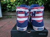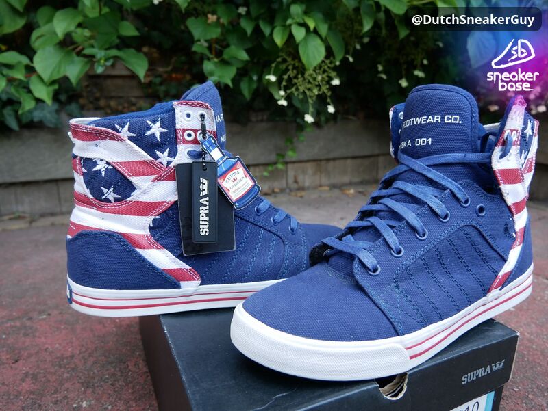 Super limited! A so called Factory 413 release. This particular Supra Skytop colorway was released for the 4th of July celebration in 2011. Only 413 pairs have been made.