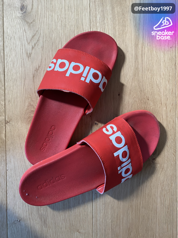 Die Adiletten von nem Fussball-Kollegen. Er hatte Sie oft vor und nach dem Spiel an, Barfuß mit Stutzen, Schweissig. Ab und zu auch zu Hause. Jetzt konnte ich mir die ergattern. Mega geile Teile