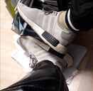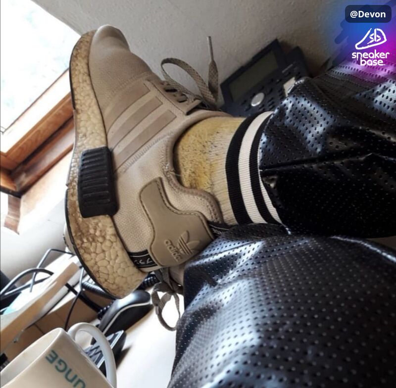 das sind meine schon lange gebrauchten Adidas Nmd R1 in den Farben grau, schwarz und weiß. Sie sind saugeil durchgelaufen und smelly.
