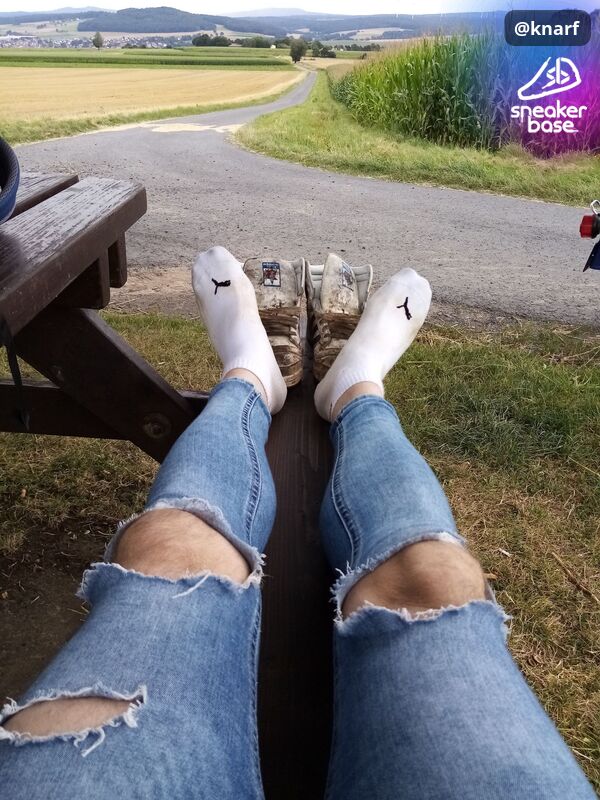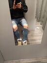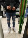 Von oben bis untern knallenge Skinnyjeans. Einfach ein geiles Tragegefühl mit den offen getragenen Hi-Tops und mega bequem. Die Rips machen es perfekt. Da gibts öffters mal ne Beule, gut wenn dann der Hoodie lang genug ist