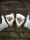 Geile used Treter. Sehr geil getragen, mega used und smelly. Die Teile werden getragen bis nix mehr geht. Mittlerweile sind die Sneaks schon ziemlich fertig. Aber so richtig used und fett offen getragen sind sie um so geiler. Für mich noch absolut tragbar! :) ;)