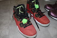 Zustand wie neu. Seht selbst auf den pics. Sogar die Schnürsenkel-Gimmicks, diese gelb-grünen Geister-FACES sind erstmal nur in einem Schuh eingefädelt, das 2. liegt lose bei.