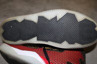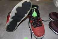 rot mit schwarz und weißem Sohlenrand, in der Sohle könnt Ihr den Schriftzug FORTY (linker Schuh) bzw. SPIKE (rechter Schuh) lesen.