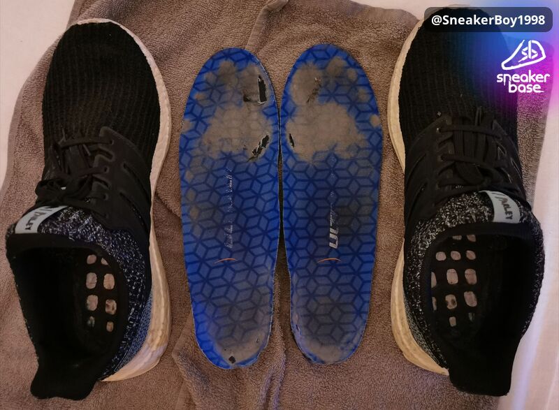 Komplett durchgetragen mit Löchern inkl. Sohle. Schuh wurde mehrere Monate durchgängig getragen.