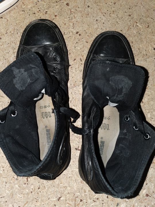 Ein "jungfräuliches" Bild dieser Leder-Chucks, die inzwischen als CumDump genutzt werden und auch schon fleißig geschluckt haben.