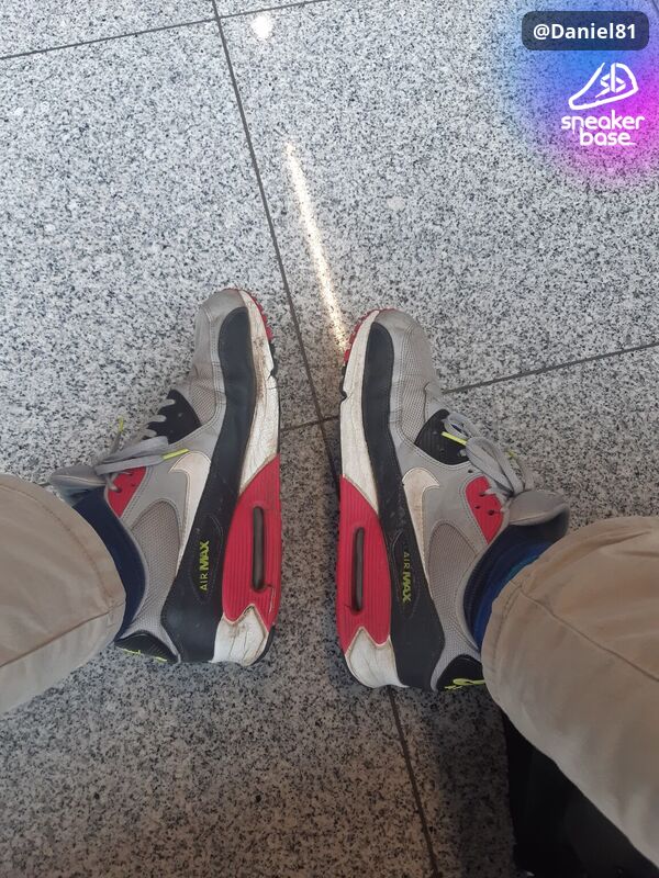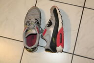 Ein paar richtig abgerockte Air Max 90, die ich seit drei Jahren sehr oft angehabt und nie pfleglich behandelt habe. Ob im Wald, auf dem Fahrrad oder in der Stadt - in denen bin ich fast überall hingegangen. Jetzt sind sie ganz schon schmutzig, ihre Sohle ist angebrochen, so dass sie nicht mehr wasserdicht sind und sie haben auch einiges an Smell, wenn sie warm und feucht von der Benutzung sind.