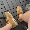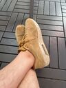 Ein paar Jahre lang getragen, mittlerweile echt durch und er trägt sie leider nicht mehr. Trage sie als (Barfuß) „Hausschuhe“ regelmäßig weiter. Sehr geiles feeling, sind innen total weich.