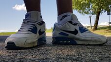 Hier mal ein Paar Nike Air Max 90, die habe ich für meinen geilen Prollkumpel und Master gestaltet und besorgt. Jetzt nach dem er sich ein Paar neue Nikes bezahlen lies hatte es keinen Bock mehr auf diese Mäxe und hat sie mir geschickt. hat er schon mal geil weich getragen.
