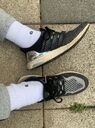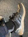 Einer meiner Lieblingssneaker. Leider kann ich 97er nur unter Schmerzen tragen (zu schmal geschnitten), daher war ich total happy als Adidas 2016 auch einen silbernen Sneaker herausbrachte. Der Zahn der Zeit nagt, aber ich versuche die Schuhe zu erhalten ![]()