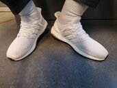Vielen Dank an den netten User hier. Habe mit ihm dieses Paar mit meinen used NMDs getauscht. Habe sie mal richtig mit Weißwaschpulver gereinigt und restauriert 😄. Jetzt werden sie wieder anständig runtergerockt. Sehr geiles Tragefeeling. Innen bereits richtig soft und weich. An den Sohlen erkennt man sofort, wie vierle km bzw. Stunden die Teile drauf haben.