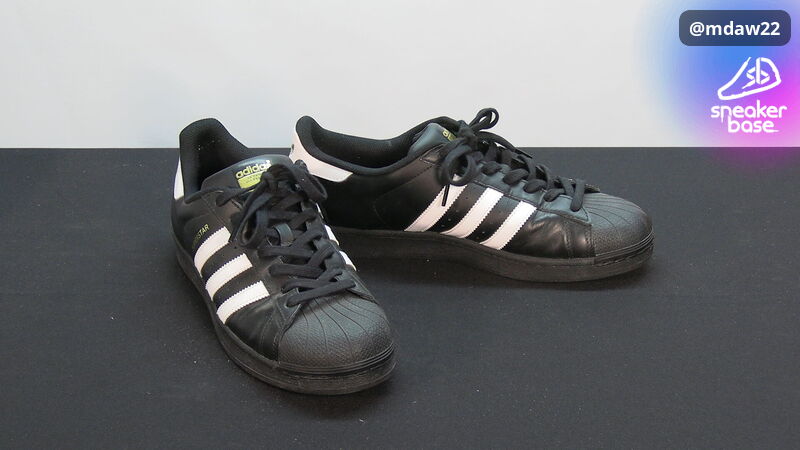Selten getragene schwarze Superstars in 44 2/3.