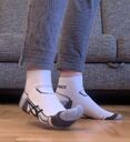 kurze dünne Laufsocken mit gepolsterter Sohle; das Asics-Logo auf der Seite sieht super aus