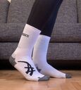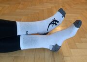 Hier habe ich noch ein paar Asics-Trainingssocken mit coolem Fuß in meiner Schublade gefunden ![]()