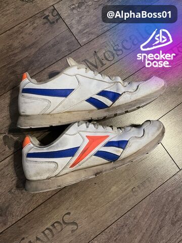 Geile Reebok classic Cl leather in blau/rot wobei das eher ein neon-rosa ist, sieht verdammt geil aus und schön eingetragen, dadurch fallen sie eher wie 45 aus.