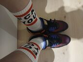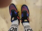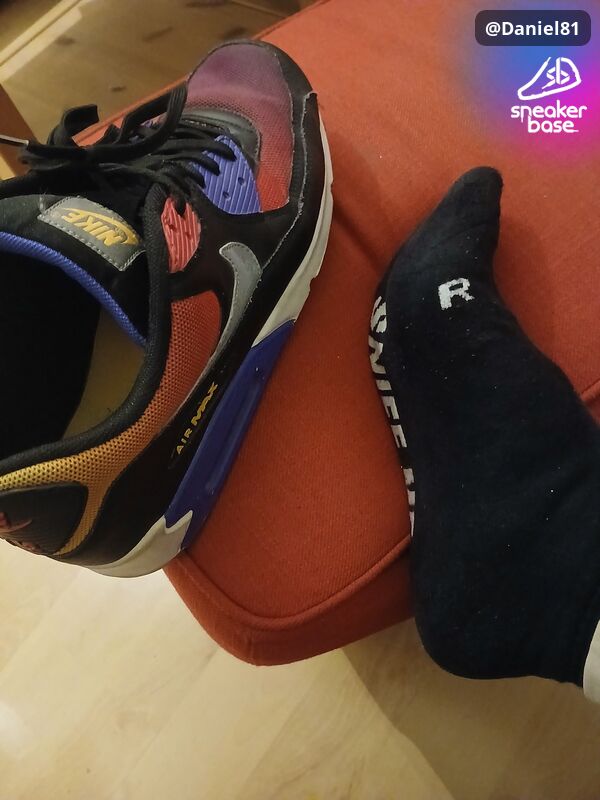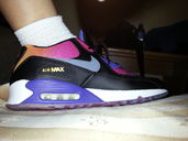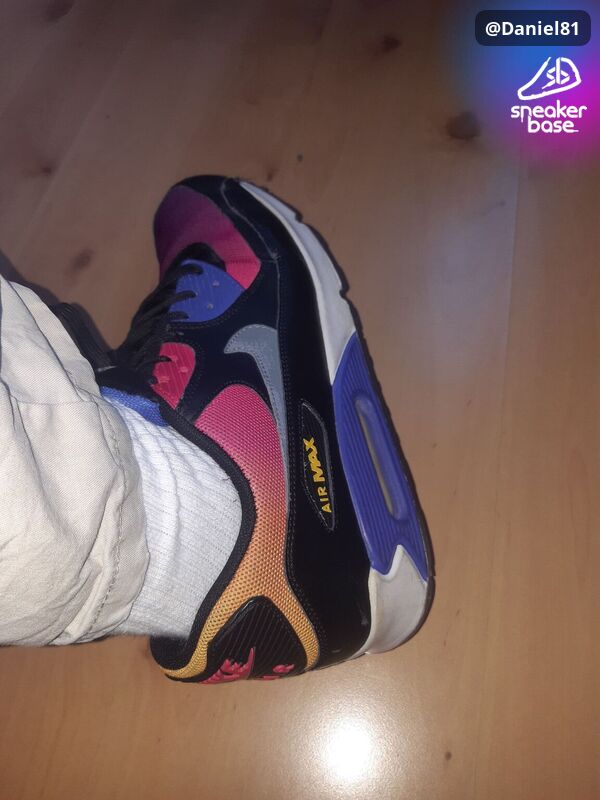 Meine Airmax 90SD in Farbgebung "Sunrise" (schwarz, pink, orange und violett). Der Farbverlauf ist großartig, auf sowas stehe ich total.