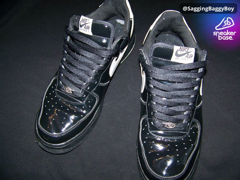 Nike Air Force One -low- schwarzer Lack und weiße Lack Swoosh!