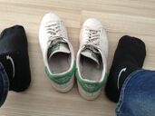 Oft getragene Adidas Stan Smith in 45,5 . Ich liebe sie,,haben einen coolen used Look und sind schön warm.....Somerset ich heute zur Prüfung....Finde der Stan Smith sieht auch immer seriös aus, zumindest äußerlich. Innen halt sehr sweaty