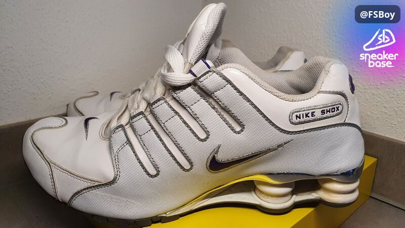 Meine weißen Nike Shox NZ EU, schon viel und gut getragen, vor allem im Hochsommer. Manche Teile sind in Lackoptik