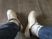 Außen noch ganz harmlos...innen heftig used...ich liebe sie. Schön warm und miefig, sehen mit weißen Socken und grauer G–Star Jeans immer endgeil aus.